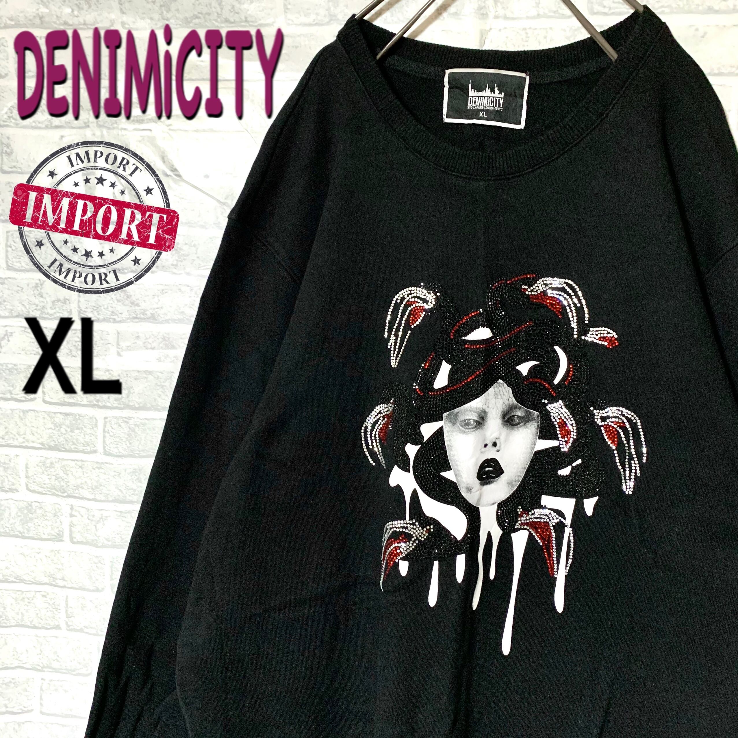 denimicity メデューサ スパンコール スウェット トレーナー XL