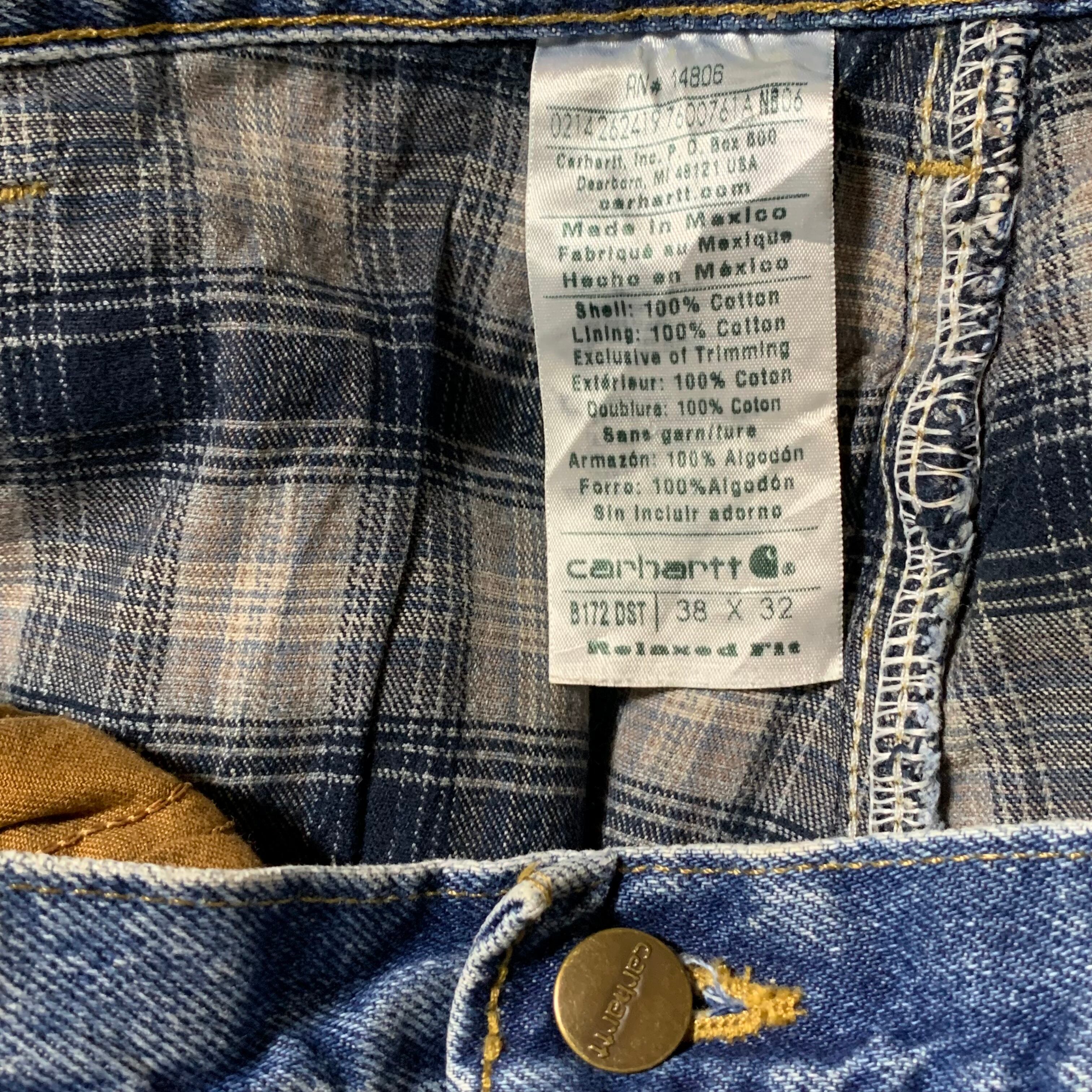 カーハート メキシコ製 極太 革タグ チェック柄 デニムジーンズ 38×32