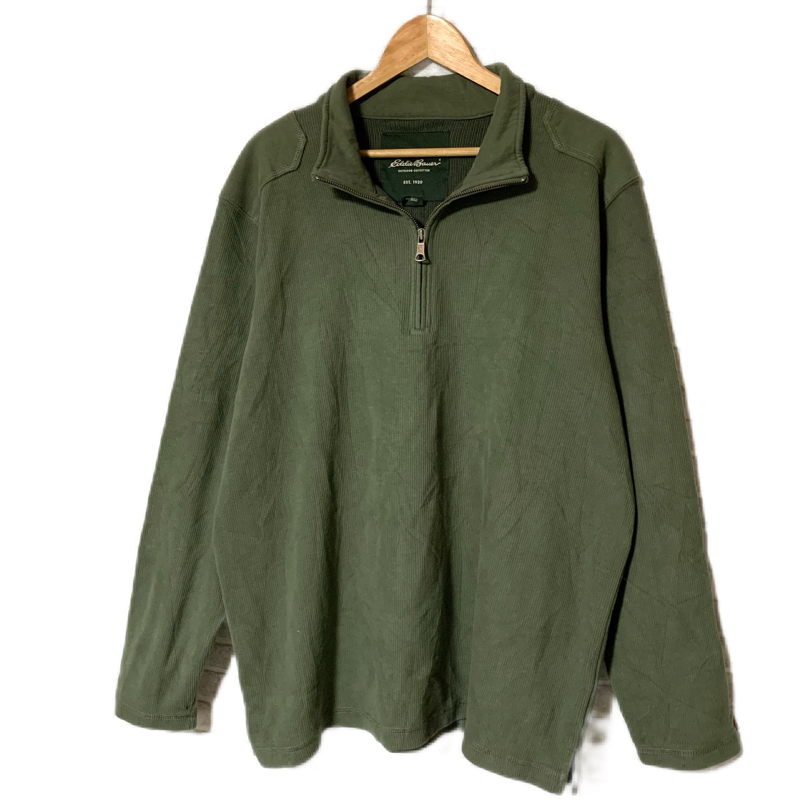 エディバウアー ハーフジップ 無地 スウェット 緑 カーキ XL