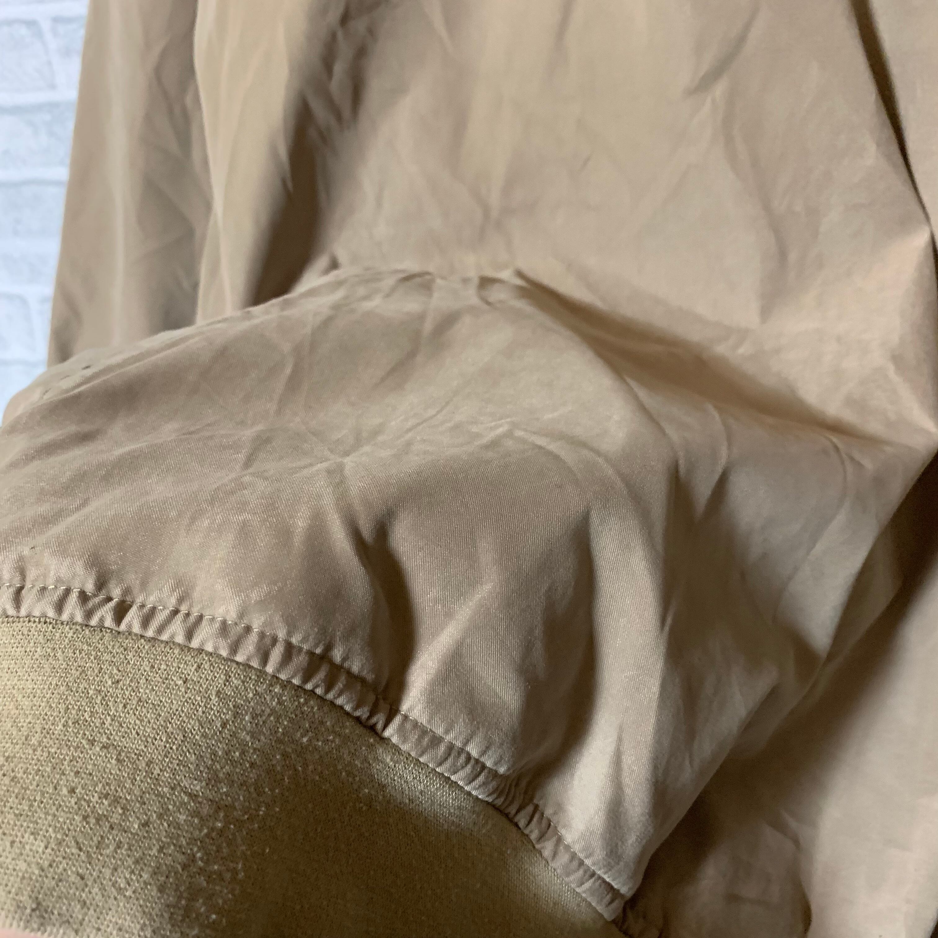 写真の通りそれほど目立たないとは思いますが、裾リブに一点汚れがあります。全体としては少し使用感はありますがコンディションは良好です。フェイクスウェードの様な生地感です。古着の特性をご理解のある方のみご検討下さい。